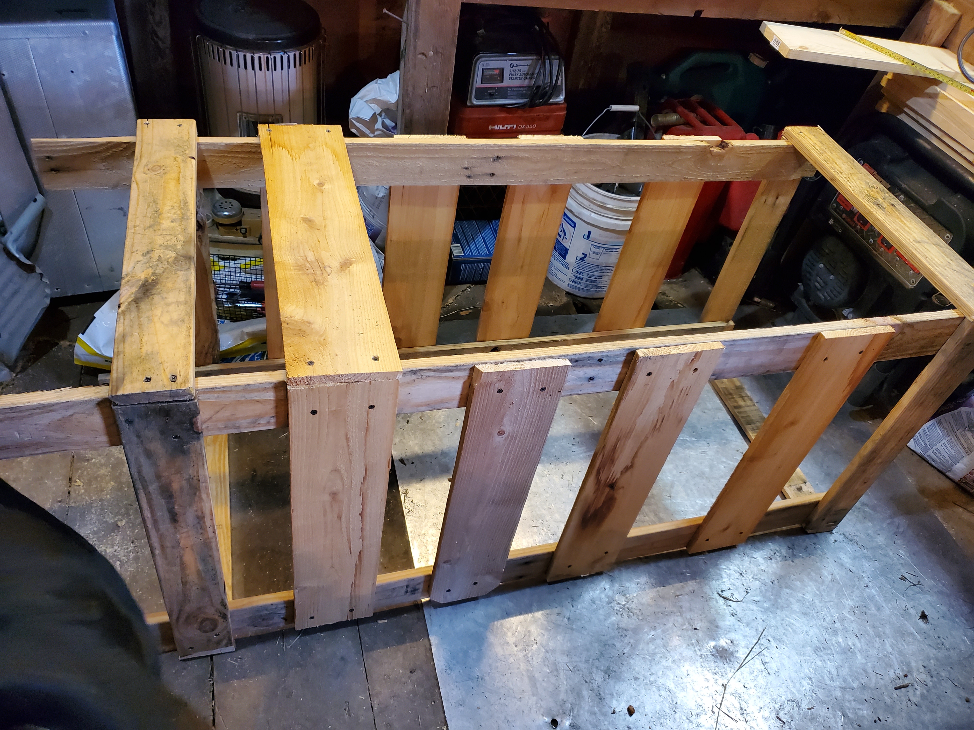Another project I have been wracking my brain on is hay feeders for the goat pen. So a funny story, I was searching Pintrest cause why not you can find all kinds of ideas on there! I found this hay tower type feeder. I’m thinking okay great lets do this. I’m trying to figure out the gaping size so I go look at the picture and palm to forehead and a ah ha moment at the same time. The Pintrest picture was for a rabbit size feeder at 56cm tall not the 5 foot one I was building. But you know what it works! Eric built another one the next day for the other pen. (The hay in the last picture was the bale I had put in the day before I built this feeder.)